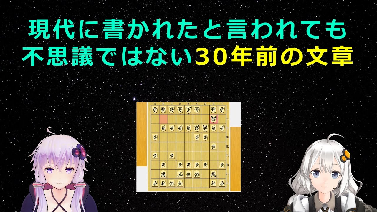 YouTubeチャンネル「将棋伝説」、227本目の動画は「現代に書かかれたと言われても不思議ではない30年前の文章」です。