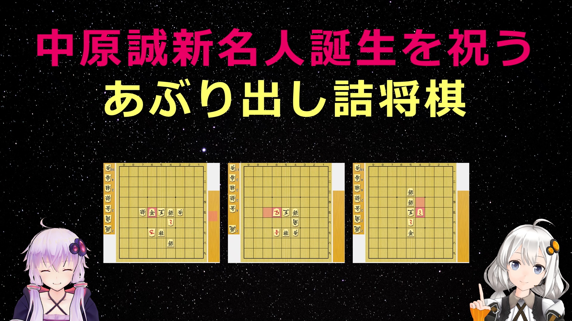 YouTubeチャンネル「将棋伝説」、268本目の動画は「中原誠新名人誕生を祝うあぶり出し詰将棋」です。